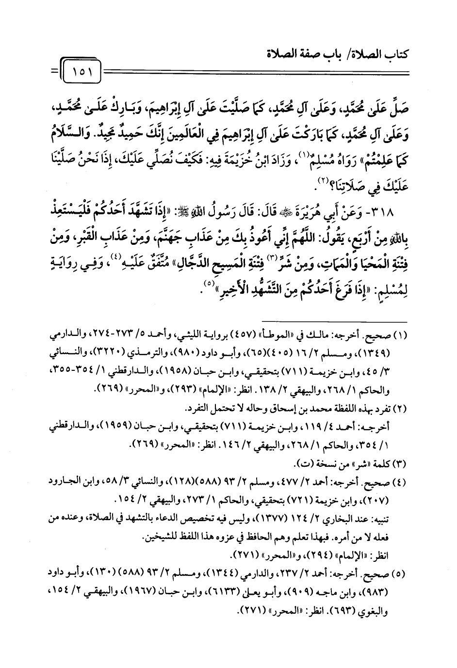 صَلِّ عَلَى مُحَمَّدٍ، وَعَلَى آلِ مُحَمَّدٍ، كَمَا صَلَّيْتَ عَلَى آلِ إِبْرَاهِيمَ، وَبَارِكْ عَلَى مُحَمَّدٍ، وَعَلَى آلِ مُحَمَّدٍ، كَمَا بَارَكْتَ عَلَى آلِ إِبْرَاهِيمَ فِي الْعَالَمِينَ إِنَّكَ حَمِيدٌ مَجِيدٌ. وَالسَّلَامُ كَمَا عَلِمْتُمْ» رَوَاهُ مُسْلِمٌ (¬1)، وَزَادَ ابْنُ خُزَيْمَةَ فِيهِ: فَكَيْفَ نُصَلِّي عَلَيْكَ، إِذَا نَحْنُ صَلَّيْنَا عَلَيْكَ فِي صَلَاتِنَا؟ (¬2).