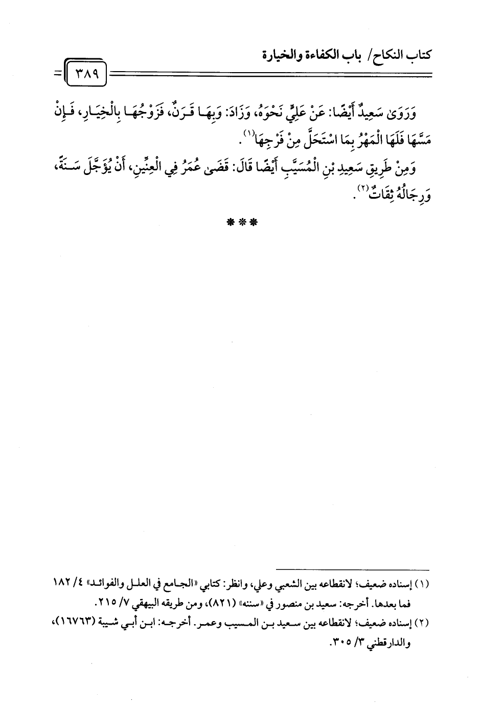 (¬2) إسناده ضعيف؛ لانقطاعه بين سعيد بن المسيب وعمر.
