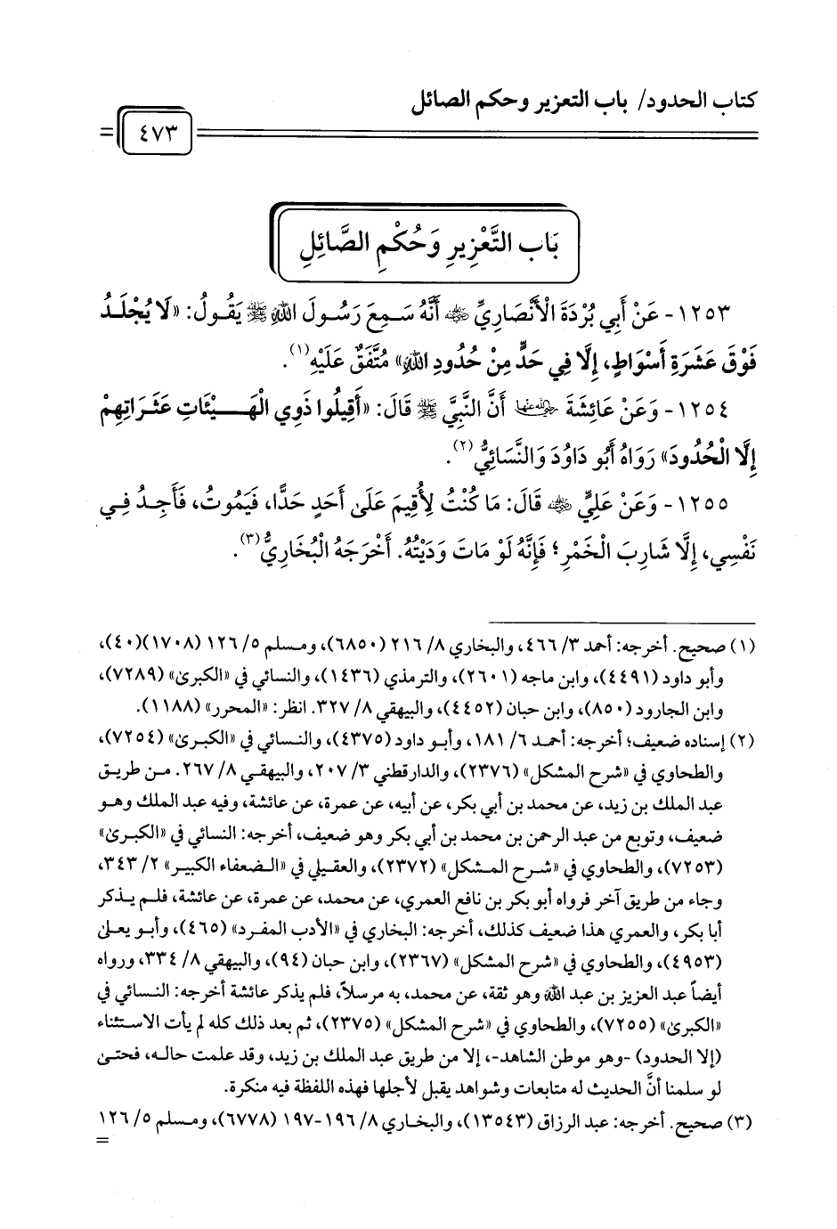 1253 - عَنْ أَبِي بُرْدَةَ الْأَنْصَارِيِّ - رضي الله عنه - أَنَّهُ سَمِعَ رَسُولَ اللَّهِ - صلى الله عليه وسلم - يَقُولُ: «لَا يُجْلَدُ فَوْقَ عَشَرَةِ أَسْوَاطٍ، إِلَّا فِي حَدٍّ مِنْ حُدُودِ اللَّهِ» مُتَّفَقٌ عَلَيْهِ (¬1).