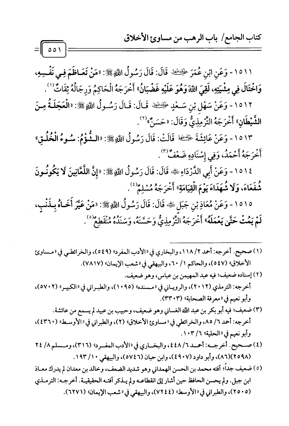 1515 - وَعَنْ مُعَاذِ بْنِ جَبَلٍ - رضي الله عنه - قَالَ: قَالَ رَسُولُ اللَّهِ - صلى الله عليه وسلم -: «مَنْ عَيَّرَ أَخَاهُ بِذَنْبٍ، لَمْ يَمُتْ حَتَّى يَعْمَلَهُ» أَخْرَجَهُ التِّرْمِذِيُّ وَحَسَّنَهُ، وَسَنَدُهُ مُنْقَطِعٌ (¬1).