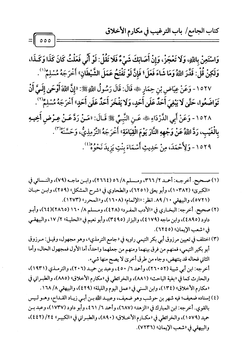 1527 - وَعَنْ عِيَاضِ بْنِ حِمَارٍ - رضي الله عنه - قَالَ: قَالَ رَسُولُ اللَّهِ - صلى الله عليه وسلم -: «إِنَّ اللَّهَ أَوْحَى إِلَيَّ أَنْ تَوَاضَعُوا، حَتَّى لَا يَبْغِيَ أَحَدٌ عَلَى أَحَدٍ، وَلَا يَفْخَرَ أَحَدٌ عَلَى أَحَدٍ» أَخْرَجَهُ مُسْلِمٌ (¬1).