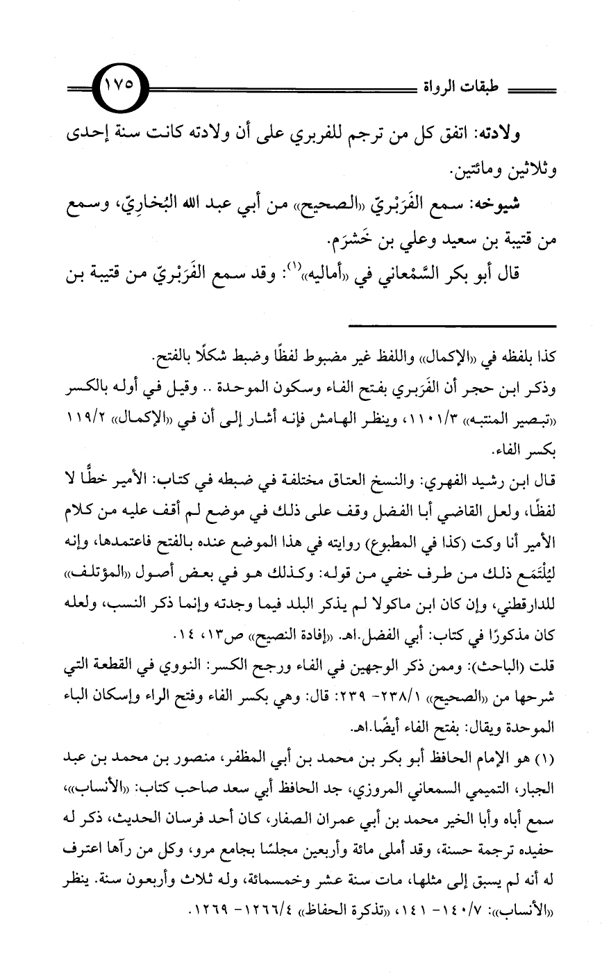 ولادته: اتفق كل من ترجم للفربري على أن ولادته كانت سنة إحدى وثلاثين ومائتين.