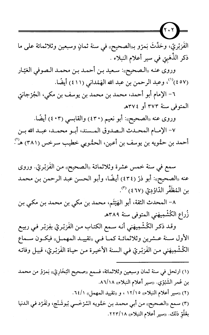 (¬3) سمع «الصحيح» من أبي محمد بن حَمُّويه السَّرْخَسي بُبوشَنْج، وتَفَرَّد في الدنيا بعُلُوِّ ذلك. «سير أعلام النبلاء» 18/ 223.