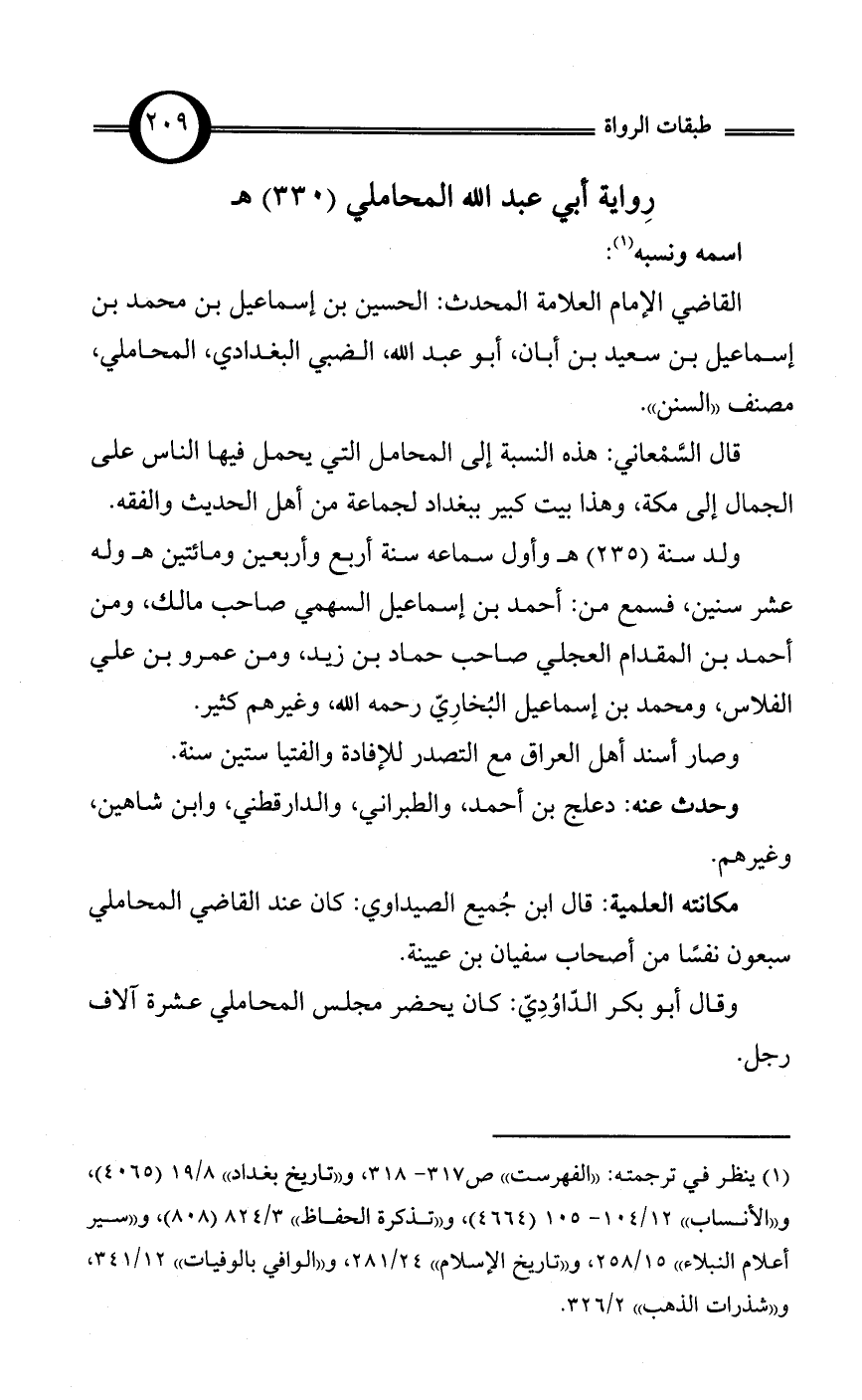 (¬1) ينظر في ترجمته: «الفهرست» ص: 317 - 318، و «تاريخ بغداد» 8/ 19 (4065)، و «الأنساب» 12/ 104 - 105 (4664)، و «تذكرة الحفاظ» 3/ 824 (808)، و «سير أعلام النبلاء» 15/ 258، و «تاريخ الإسلام» 24/ 281، و «الوافي بالوفيات» 12/ 341، و «شذرات الذهب» 2/ 326.