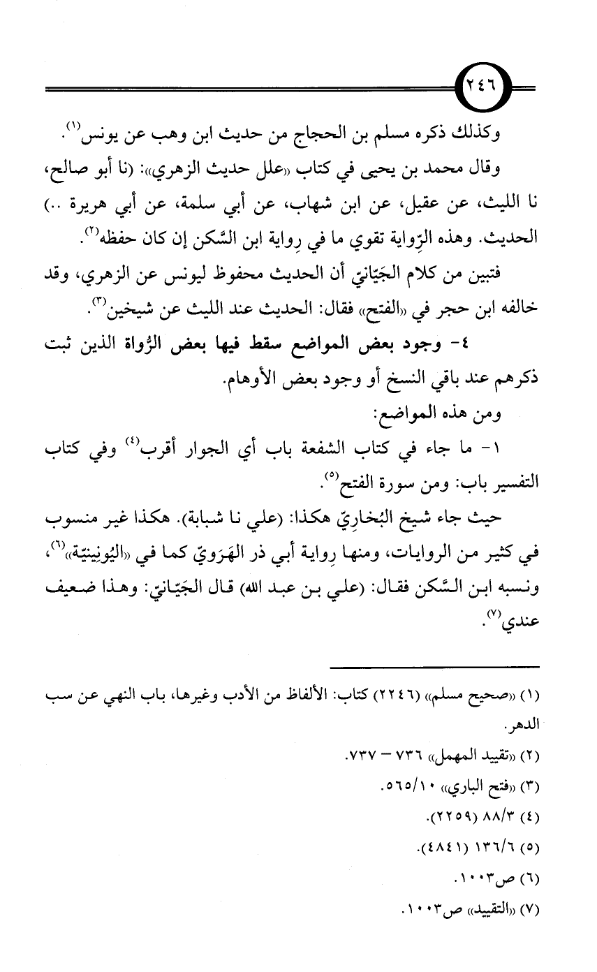 4 - وجود بعض المواضع سقط فيها بعض الرُّواة الذين ثبت ذكرهم عند باقي النسخ أو وجود بعض الأوهام.