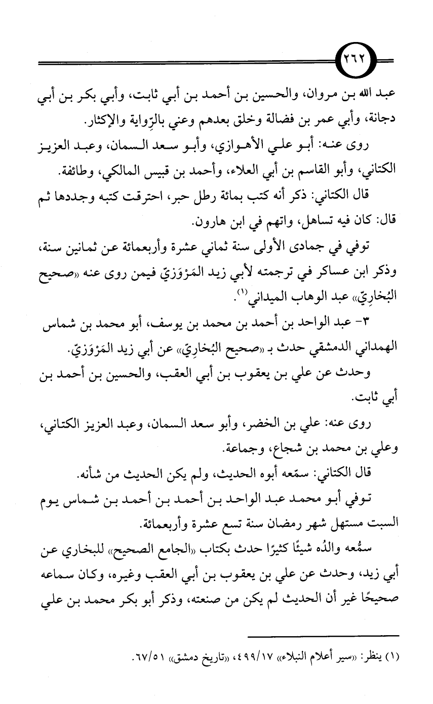 3 - عبد الواحد بن أحمد بن محمد بن يوسف، أبو محمد بن شماس الهمداني الدمشقي حدث بـ «صحيح البُخارِيّ» عن أبي زيد المَرْوَزيّ.