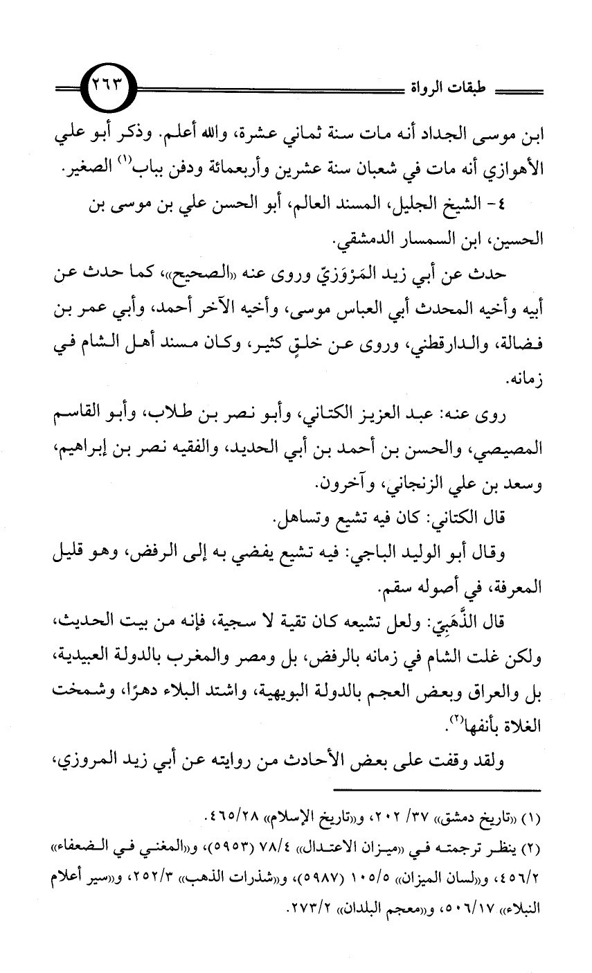 4 - الشيخ الجليل، المسند العالم، أبو الحسن علي بن موسى بن الحسين، ابن السمسار الدمشقي.