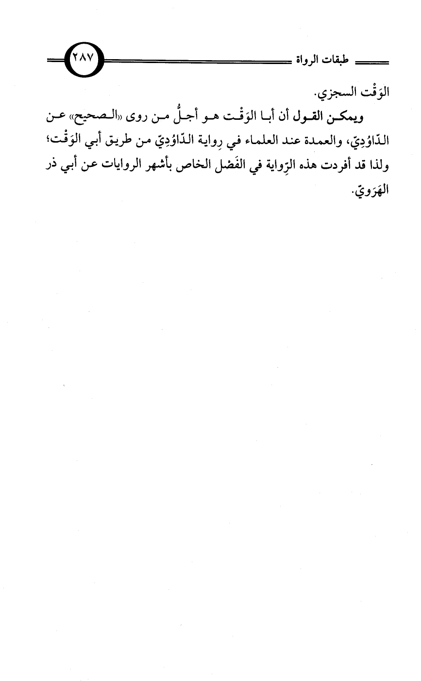 ويمكن القول أن أبا الوَقْت هو أجلُّ من روى «الصحيح» عن الدّاوُدِيّ، والعمدة عند العلماء في رِواية الدّاوُدِيّ من طريق أبي الوَقْت؛ ولذا قد أفردت هذه الرِّواية في الفَصْل الخاص بأشهر الروايات عن أبي ذر الهَرَويّ.