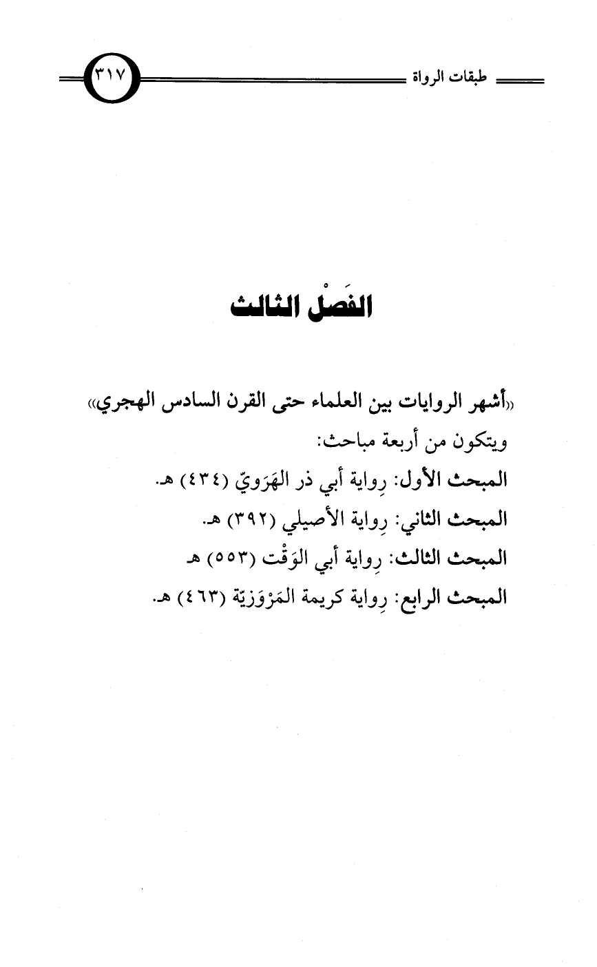 «أشهر الروايات بين العلماء حتى القرن السادس الهجري»