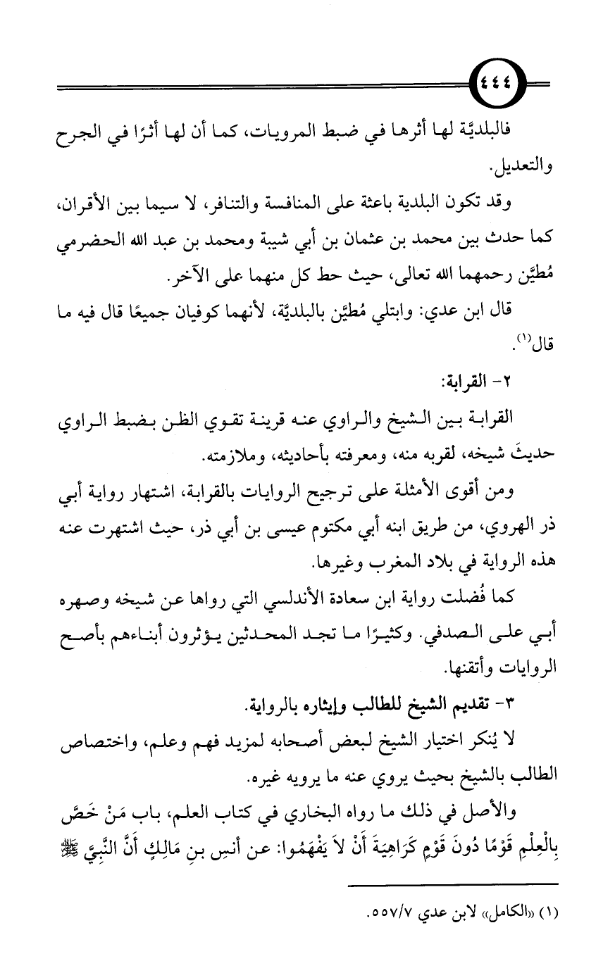 فالبلديَّة لها أثرها في ضبط المرويات، كما أن لها أثرًا في الجرح والتعديل.