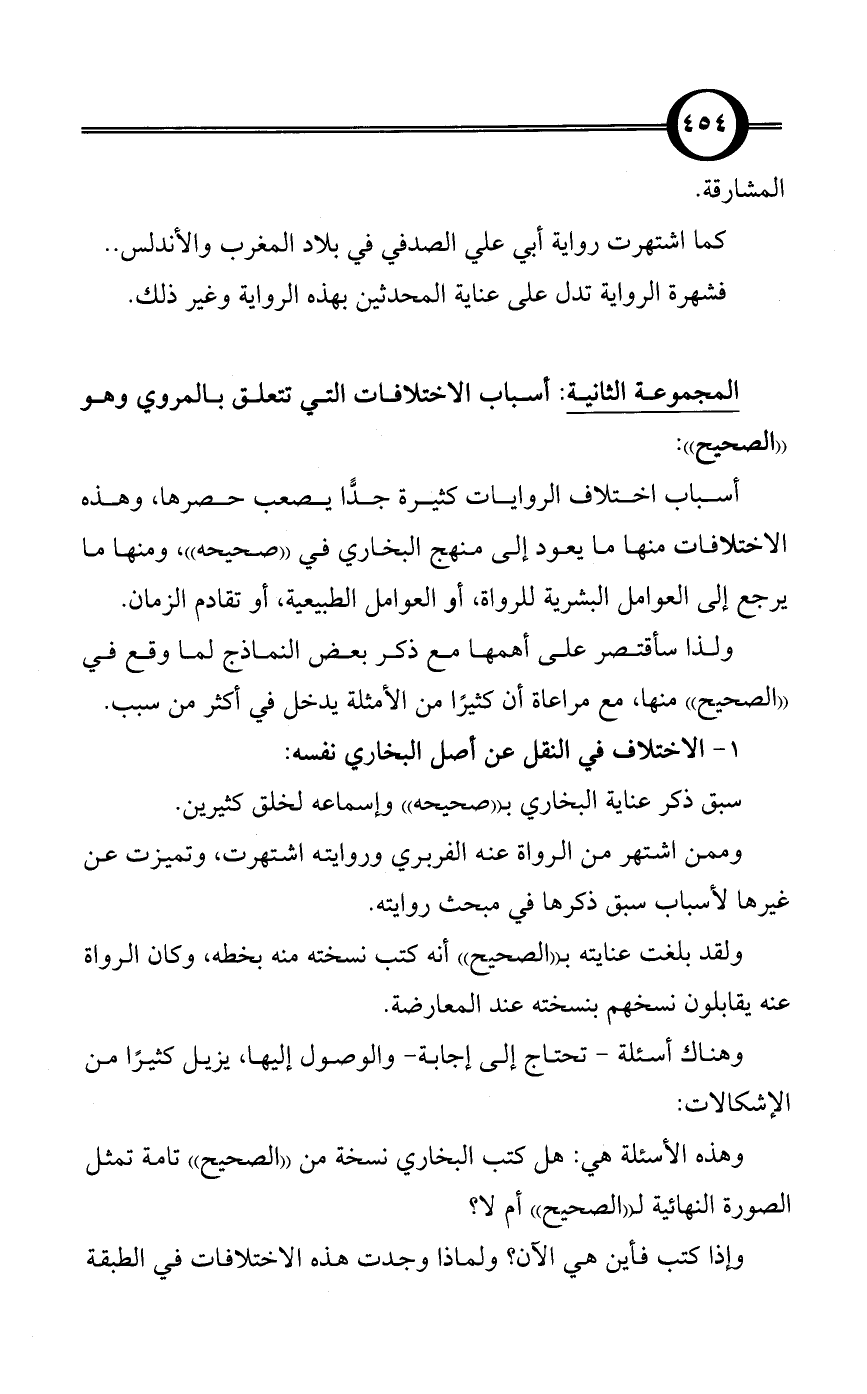 المجموعة الثانية: أسباب الاختلافات التي تتعلق بالمروي وهو «الصحيح»:
