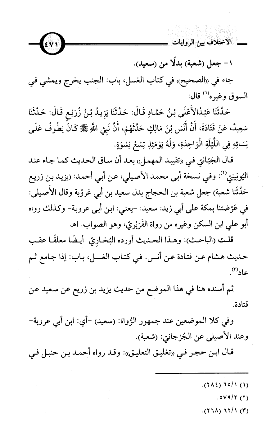 وفي كلا الموضعين عند جمهور الرُّواة: (سعيد) - أي: ابن أبي عروبة - وعند الأصيلى عن الجُرْجانيّ: (شعبة).