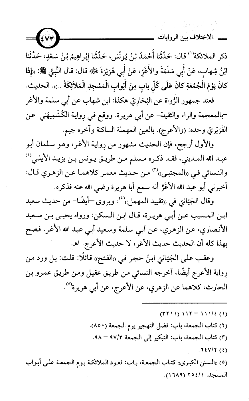 (¬5) «السنن الكبرى» كتاب الجمعة، باب: قعود الملائكة يوم الجمعة على أبواب المسجد. 1/ 254 (1689).