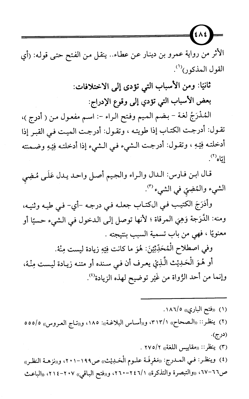 (¬4) وينظر: في المدرج: «مَعْرِفَة علوم الْحَدِيْث» ص: 199 - 201، و «نزهة النظر» ص: 66 - 67، «والتبصرة والتذكرة» 1/ 246 - 260، و «فتح الباقي» 207 - 214، «الباعث الحثيث» ص: 61 - 64 وغير ذلك.