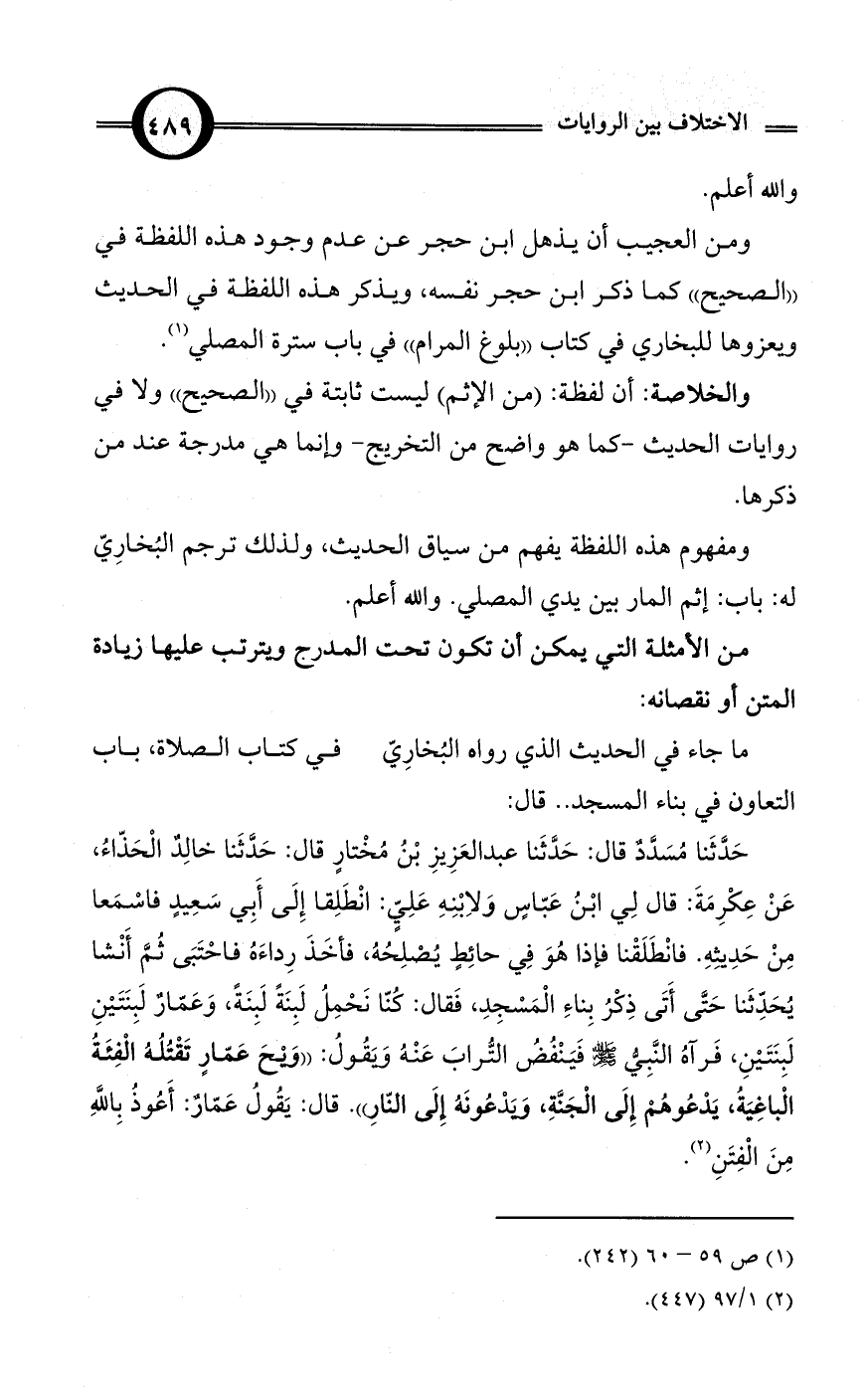 من الأمثلة التي يمكن أن تكون تحت المدرج ويترتب عليها زيادة المتن أو نقصانه: