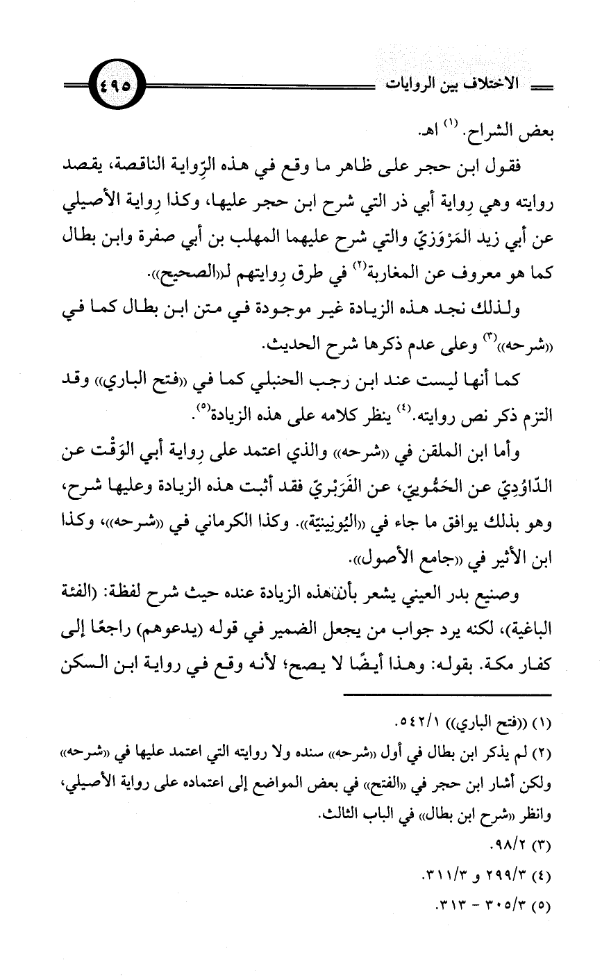 فقول ابن حجر على ظاهر ما وقع في هذه الرِّواية الناقصة، يقصد روايته وهي رِواية أبي ذر التي شرح ابن حجر عليها، وكذا رِواية الأصيلي عن أبي زيد المَرْوَزيّ والتي شرح عليهما المهلب بن أبي صفرة وابن بطال كما هو معروف عن المغاربة (¬2) في طرق رِوايتهم لـ «الصحيح».