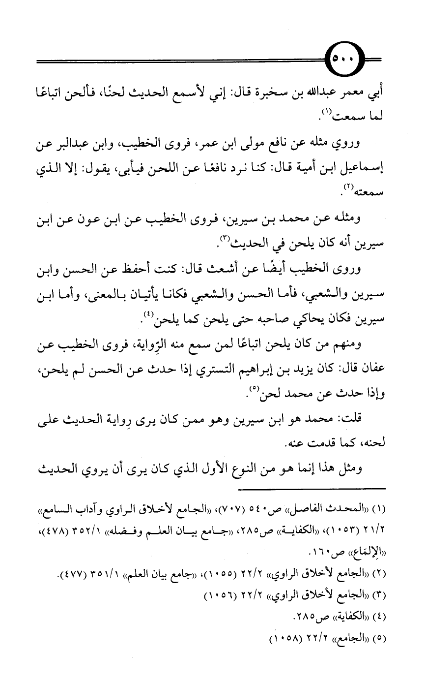 (¬1) «المحدث الفاصل» ص: 540 (707)، «الجامع لأخلاق الراوي وآداب السامع» 2/ 21 (1053)، «الكفاية» ص: 285، «جامع بيان العلم وفضله» 1/ 352 (478)، «الِإلمَاع» ص: 160.