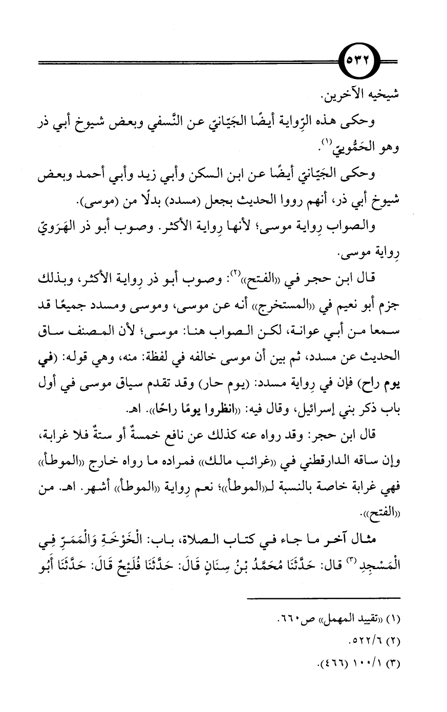 وحكى الجَيّانيّ أيضًا عن ابن السكن وأبي زيد وأبي أحمد وبعض شيوخ أبي ذر، أنهم رووا الحديث بجعل (مسدد) بدلًا من (موسى).