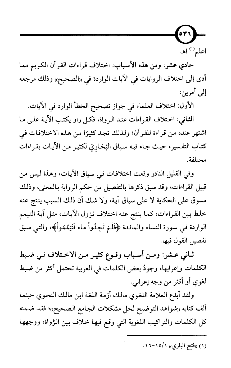 حادي عشر: ومن هذه الأسباب: اختلاف قراءات القرآن الكريم مما أدى إلى اختلاف الروايات في الآيات الواردة في «الصحيح» وذلك مرجعه إلى أمرين: