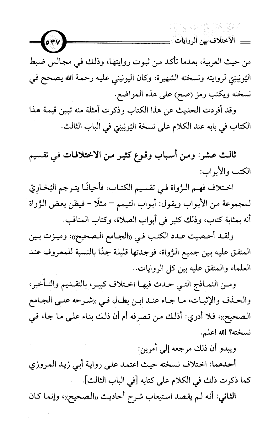 ثالث عشر: ومن أسباب وقوع كثير من الاختلافات في تقسيم الكتب والأبواب