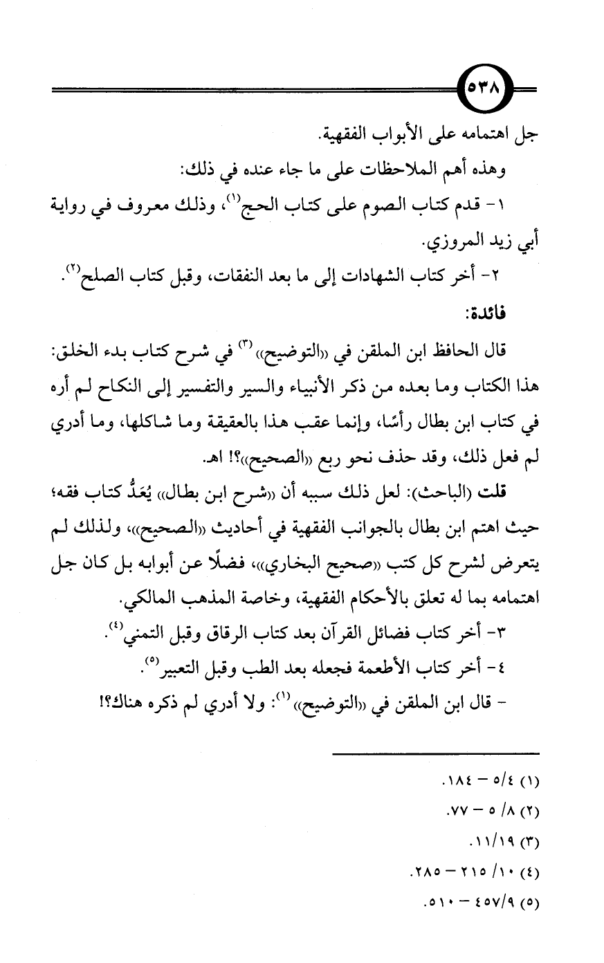 4 - أخر كتاب الأطعمة فجعله بعد الطب وقبل التعبير (¬5).