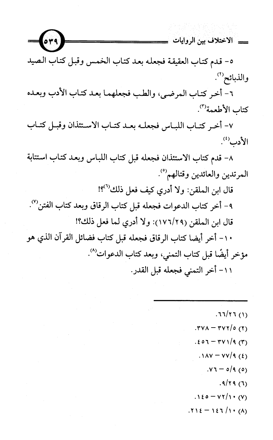 6 - أخر كتاب المرضى، والطب فجعلهما بعد كتاب الأدب وبعده كتاب الأطعمة (¬2).