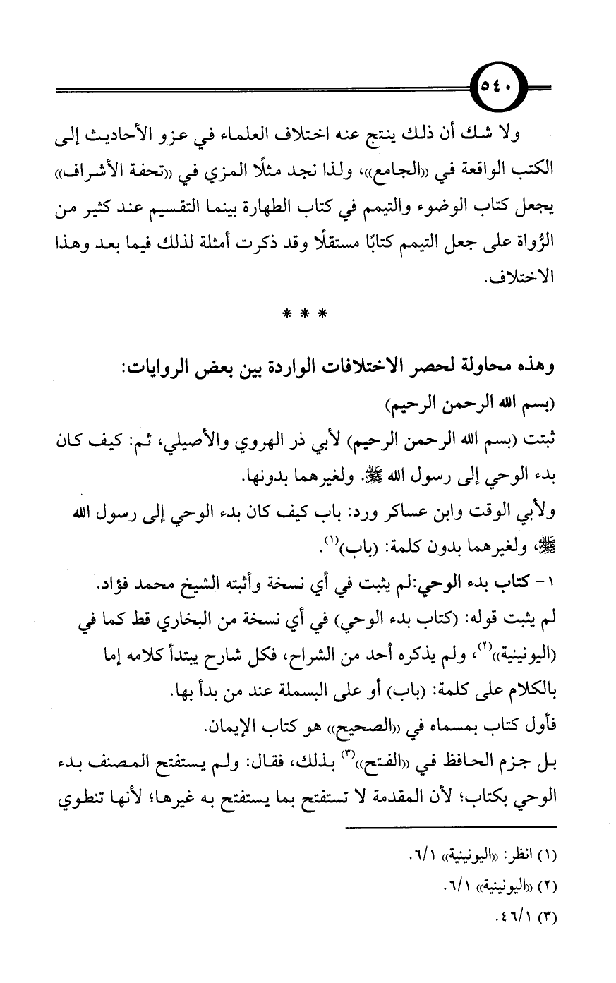 1 - كتاب بدء الوحي: لم يثبت في أي نسخة وأثبته الشيخ محمد فؤاد.