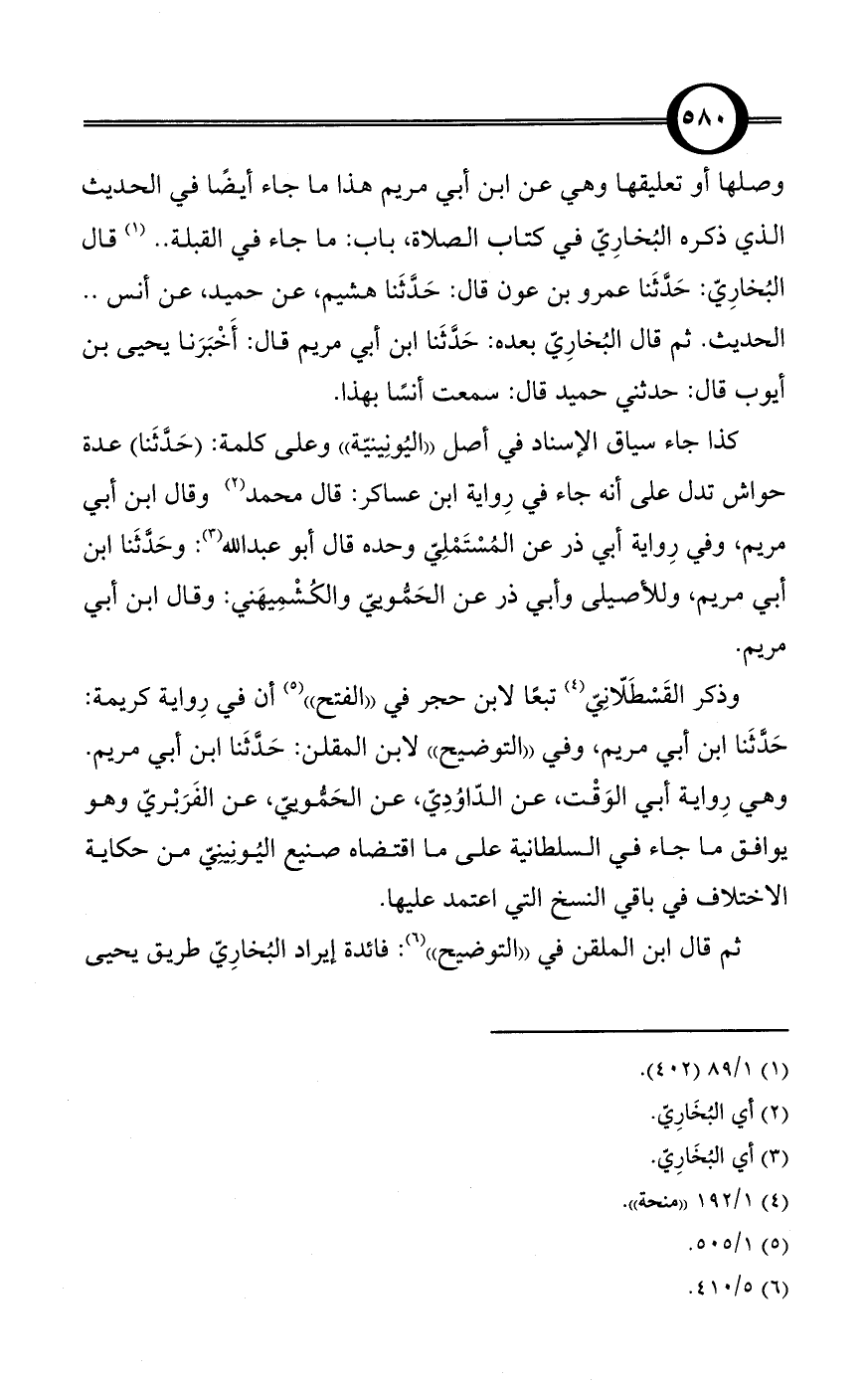 وذكر القَسْطَلّانِيّ (¬4) تبعًا لابن حجر في «الفتح» (¬5) أن في رِواية كريمة: حَدَّثَنا ابن أبي مريم، وفي «التوضيح» لابن المقلن: حَدَّثَنا ابن أبي مريم. وهي رِواية أبي الوَقْت، عن الدّاوُدِيّ، عن الحَمُّوييّ، عن الفَرَبْريّ وهو يوافق ما جاء في السلطانية على ما اقتضاه صنيع اليُونِينِيّ من حكاية الاختلاف في باقي النسخ التي اعتمد عليها.