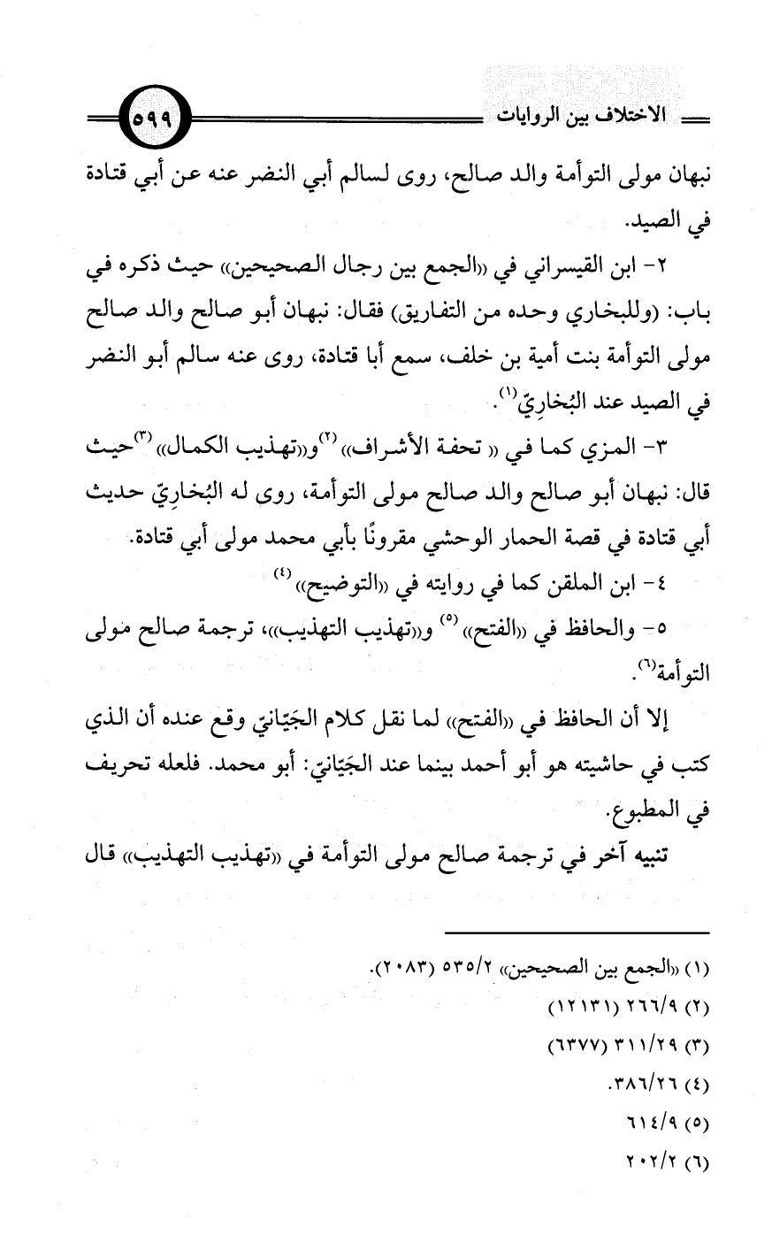 5 - والحافظ في «الفتح» (¬5) و «تهذيب التهذيب»، ترجمة صالح مولى التوأمة (¬6).