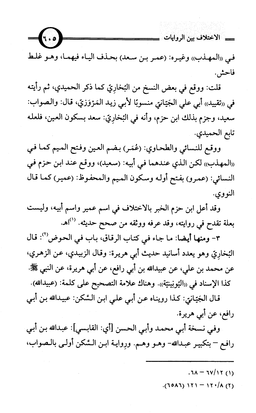 ووقع للنسائي والطحاوي: (عُمَر) بضم العين وفتح الميم كما في «المهذب» لكن الذي عندهما في أبيه: (سعيد)، ووقع عند ابن حزم في النسائي: (عمرو) بفتح أوله وسكون الميم والمحفوظ: (عمير) كما قال النووي.