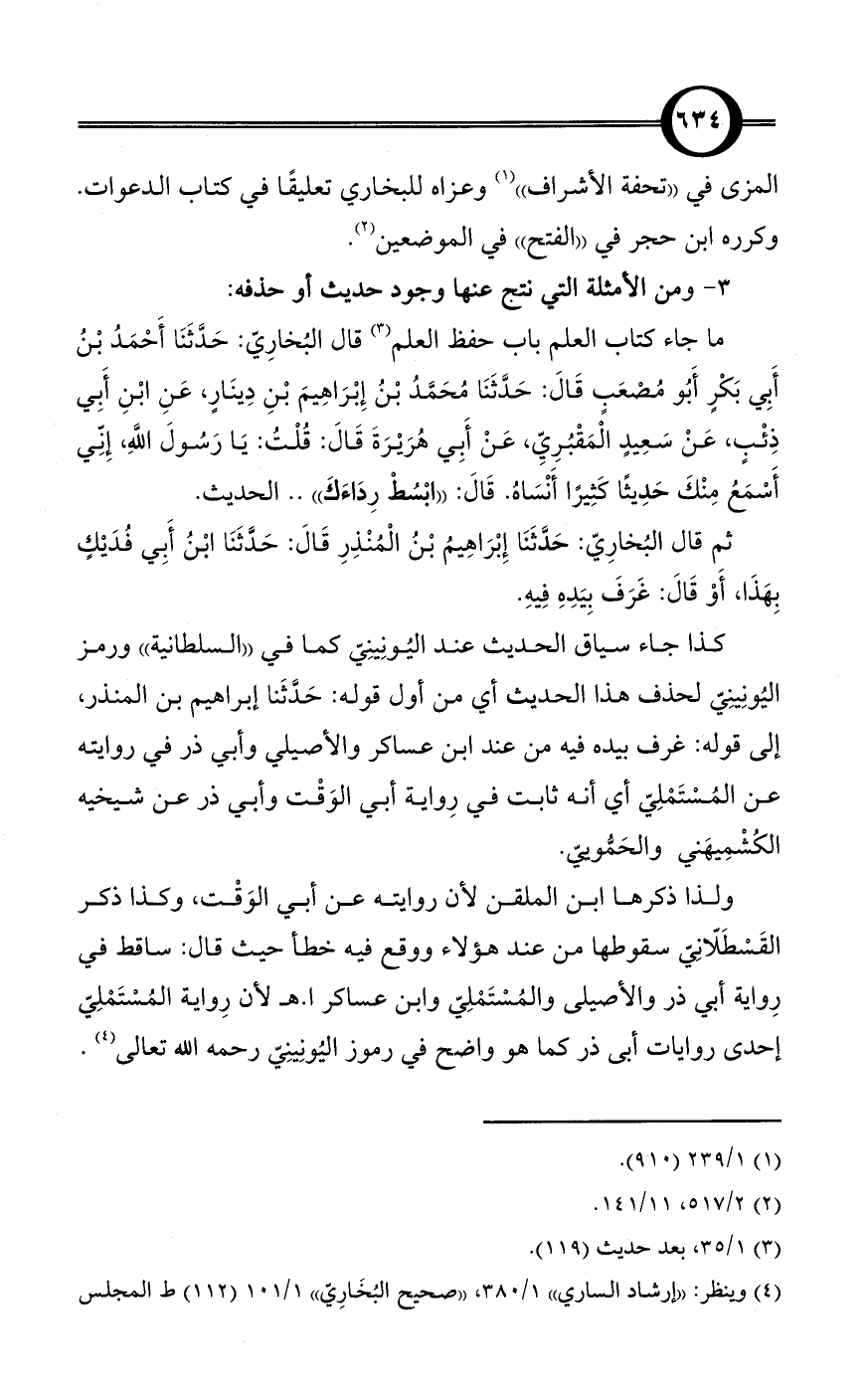 3 - ومن الأمثلة التي نتج عنها وجود حديث أو حذفه: