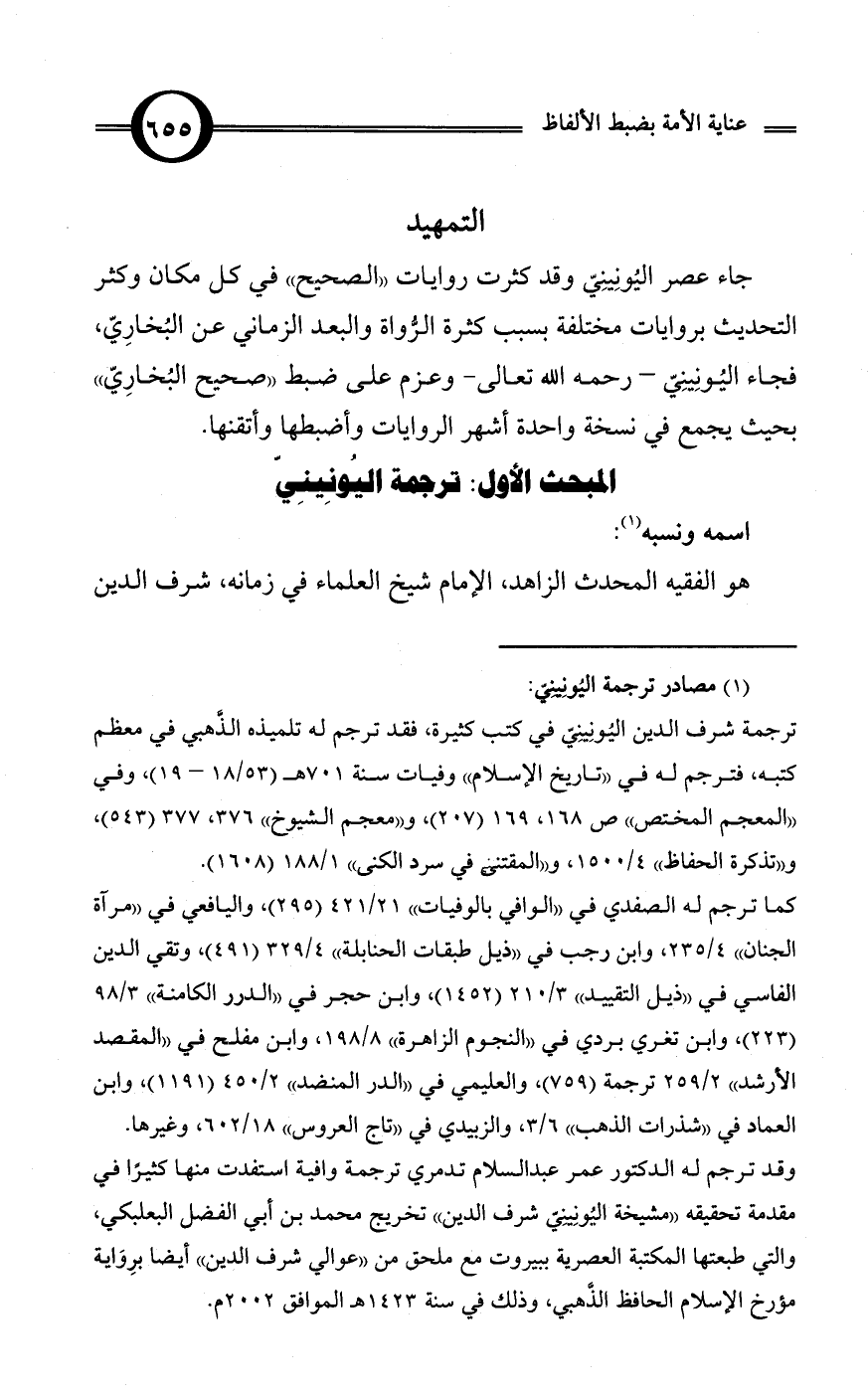 وقد ترجم له الدكتور عمر عبد السلام تدمري ترجمة وافية استفدت منها كثيرًا في مقدمة تحقيقه «مشيخة اليُونِينِيّ شرف الدين» تخريج محمد بن أبي الفضل البعلبكي، والتي طبعتها المكتبة العصرية ببيروت مع ملحق من «عوالي شرف الدين» أيضا برِوَاية مؤرخ الإسلام الحافظ الذَّهبي، وذلك في سنة 1423 هـ الموافق 2002 م.