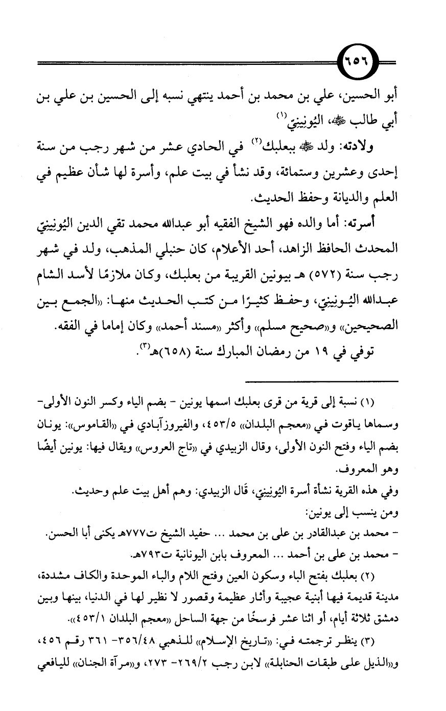 (¬1) نسبة إلى قرية من قرى بعلبك اسمها يونين - بضم الياء وكسر النون الأولى - وسماها ياقوت في «معجم البلدان» 5/ 453، والفيروزآبادي في «القاموس»: يونان بضم الياء وفتح النون الأولى، وقال الزبيدي في «تاج العروس» ويقال فيها: يونين أيضًا وهو المعروف.