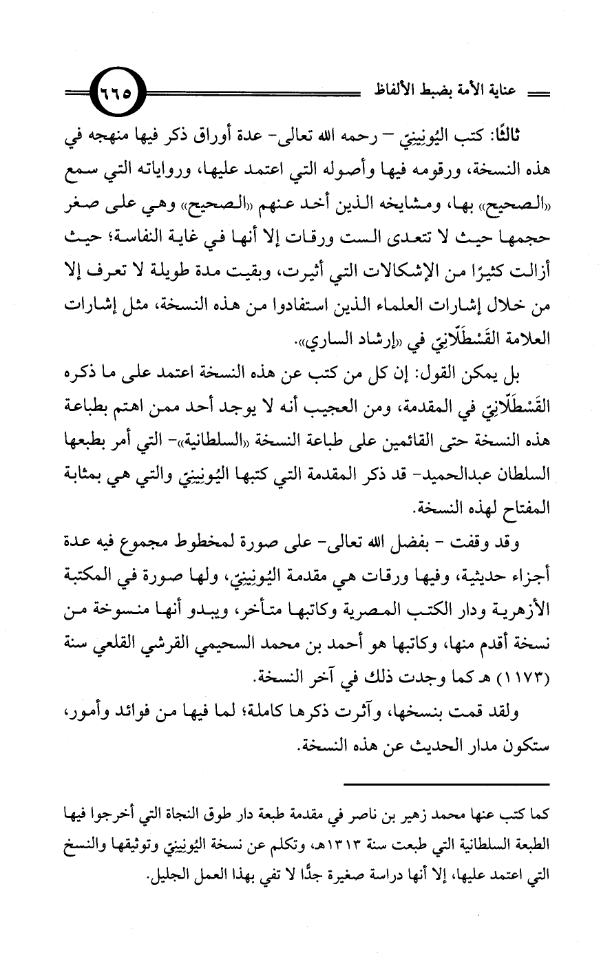 بل يمكن القول: إن كل من كتب عن هذه النسخة اعتمد على ما ذكره القَسْطَلّانِيّ في المقدمة، ومن العجيب أنه لا يوجد أحد ممن اهتم بطباعة هذه النسخة حتى القائمين على طباعة النسخة «السلطانية» - التي أمر بطبعها السلطان عبد الحميد - قد ذكر المقدمة التي كتبها اليُونِينِيّ والتي هي بمثابة المفتاح لهذه النسخة.