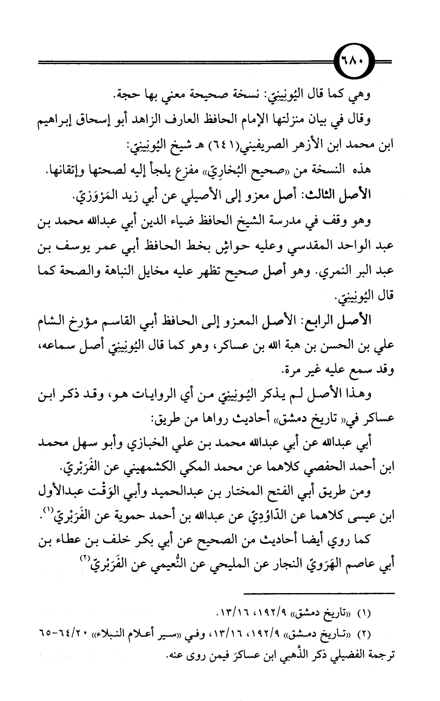 (¬2) «تاريخ دمشق» 9/ 192، 16/ 13، وفي «سير أعلام النبلاء» 20/ 64 - 65 ترجمة الفضيلي ذكر الذَّهبي ابن عساكرَ فيمن روى عنه.