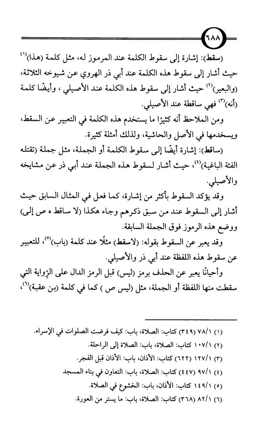 ومن الملاحظ أنه كثيرًا ما يستخدم هذه الكلمة في التعبير عن السقط، ويسخدمها في الأصل والحاشية، ولذلك أمثلة كثيرة.