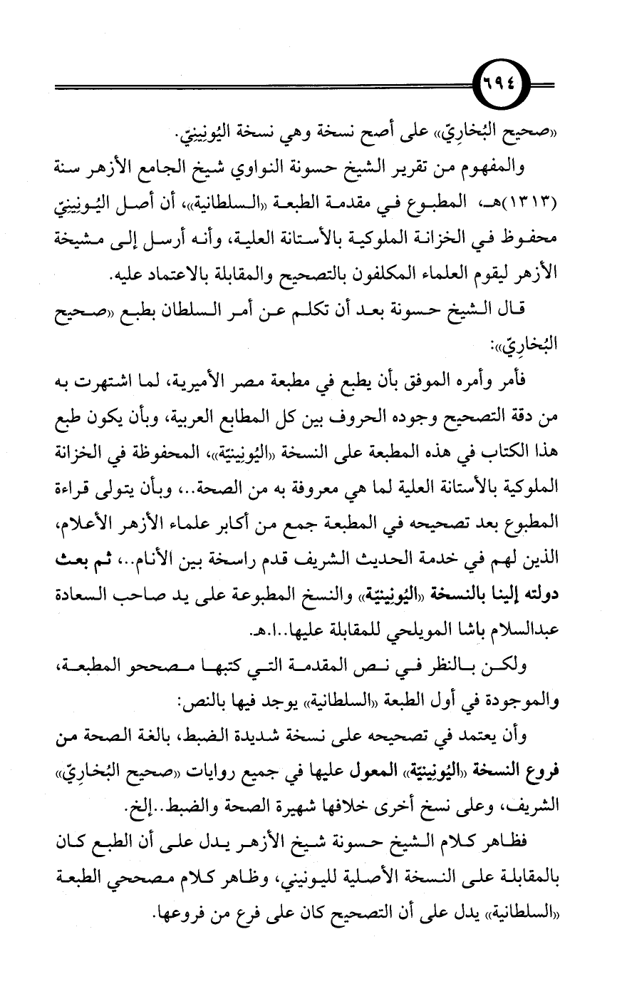 قال الشيخ حسونة بعد أن تكلم عن أمر السلطان بطبع «صحيح البُخارِيّ»: