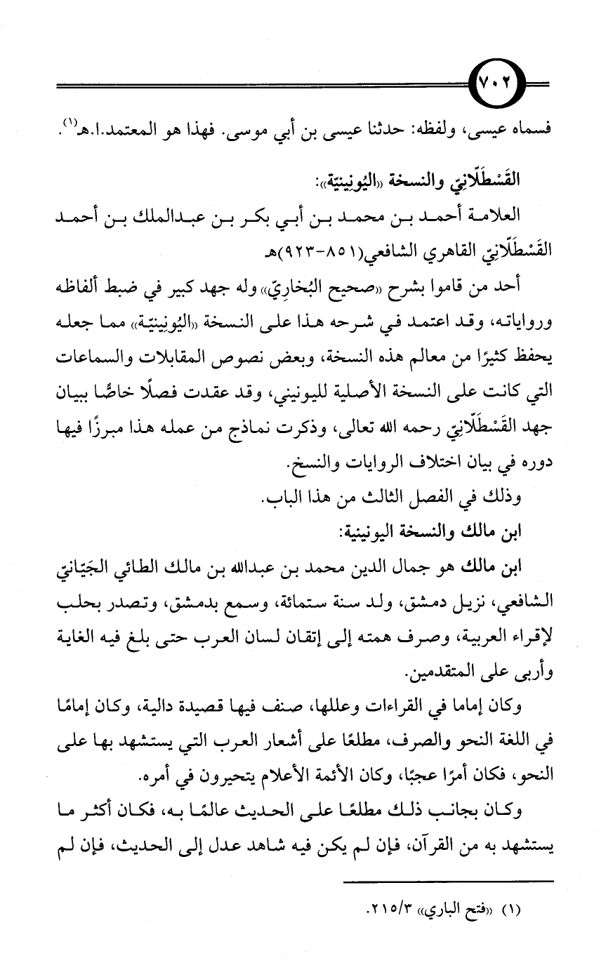 القَسْطَلّانِيّ والنسخة «اليُونِينيّة»: