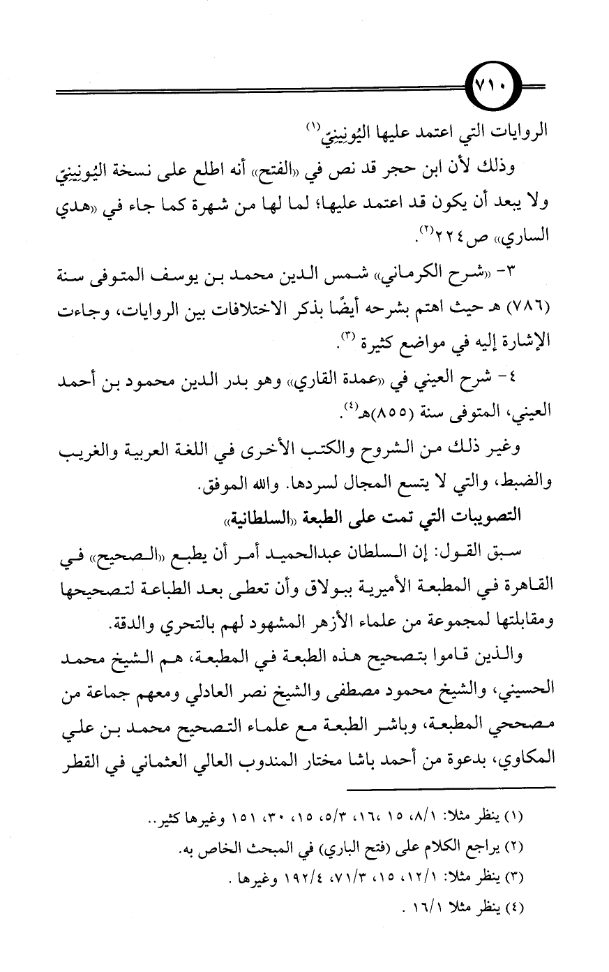 سبق القول: إن السلطان عبد الحميد أمر أن يطبع «الصحيح» في القاهرة في المطبعة الأميرية ببولاق وأن تعطى بعد الطباعة لتصحيحها ومقابلتها لمجموعة من علماء الأزهر المشهود لهم بالتحري والدقة.