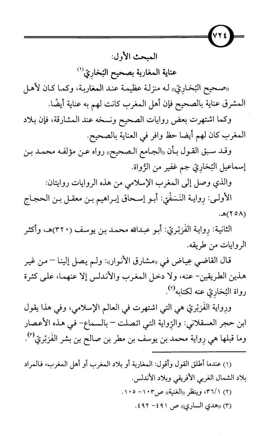 «صحيح البُخارِيّ» له منزلة عظيمة عند المغاربة، وكما كان لأهل المشرق عناية بالصحيح فإن أهل المغرب كانت لهم به عناية أيضًا.