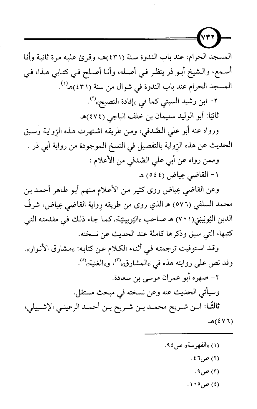 وقد استوفيت ترجمته في أثناء الكلام عن كتابه: «مشارق الأنوار». وقد نص على روايته هذه في «المشارق» (¬3)، و «الغنية» (¬4).