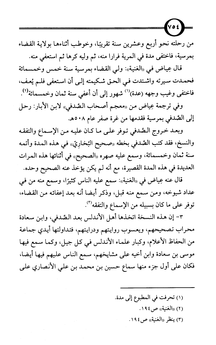 وفي ترجمة عِياض من «معجم أصحاب الصَّدفي» لابن الأبار: رحل إلى الصَّدفي بمرسية فقدمها من غرة صفر عام 508 هـ.