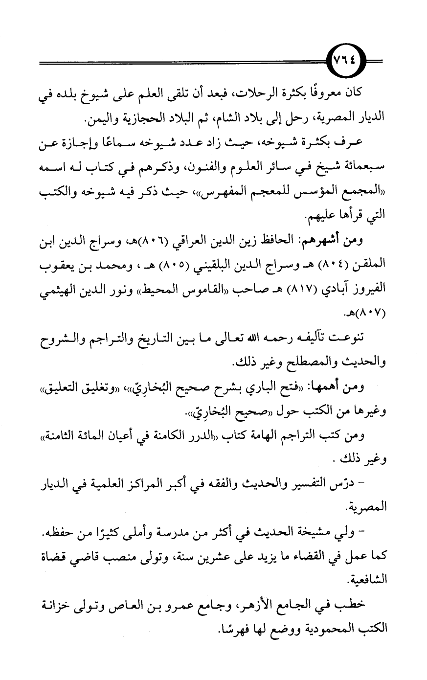 ومن أشهرهم: الحافظ زين الدين العراقي (806) هـ، وسراج الدين ابن الملقن (804) هـ وسراج الدين البلقيني (805) هـ، ومحمد بن يعقوب الفيروز آبادي (817) هـ صاحب «القاموس المحيط» ونور الدين الهيثمي (807) هـ.