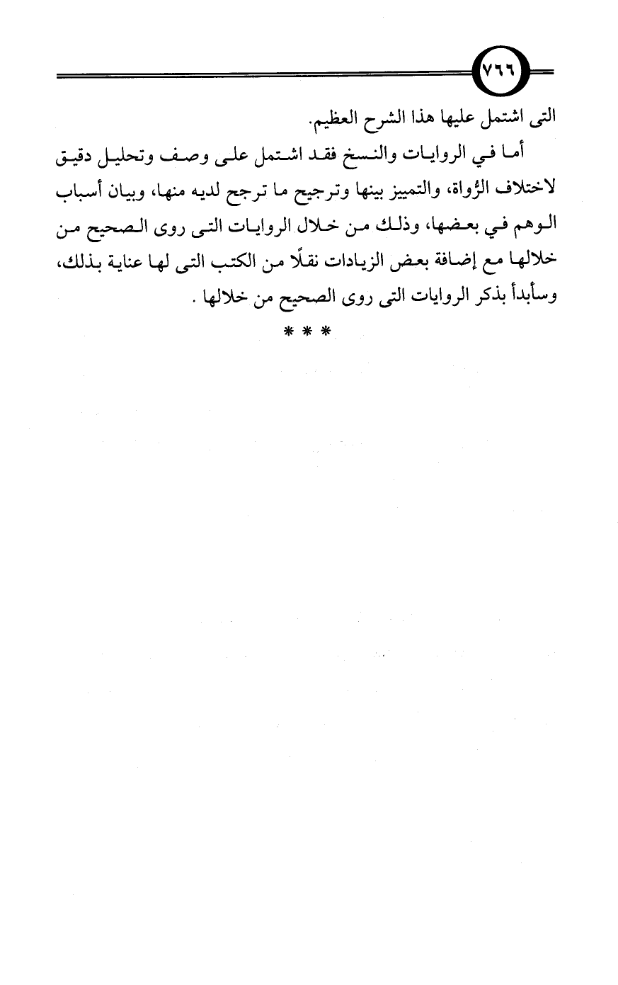 أما في الروايات والنسخ فقد اشتمل على وصف وتحليل دقيق لاختلاف الرُّواة، والتمييز بينها وترجيح ما ترجح لديه منها، وبيان أسباب الوهم في بعضها، وذلك من خلال الروايات التى روى الصحيح من خلالها مع إضافة بعض الزيادات نقلًا من الكتب التى لها عناية بذلك، وسأبدأ بذكر الروايات التى روى الصحيح من خلالها.