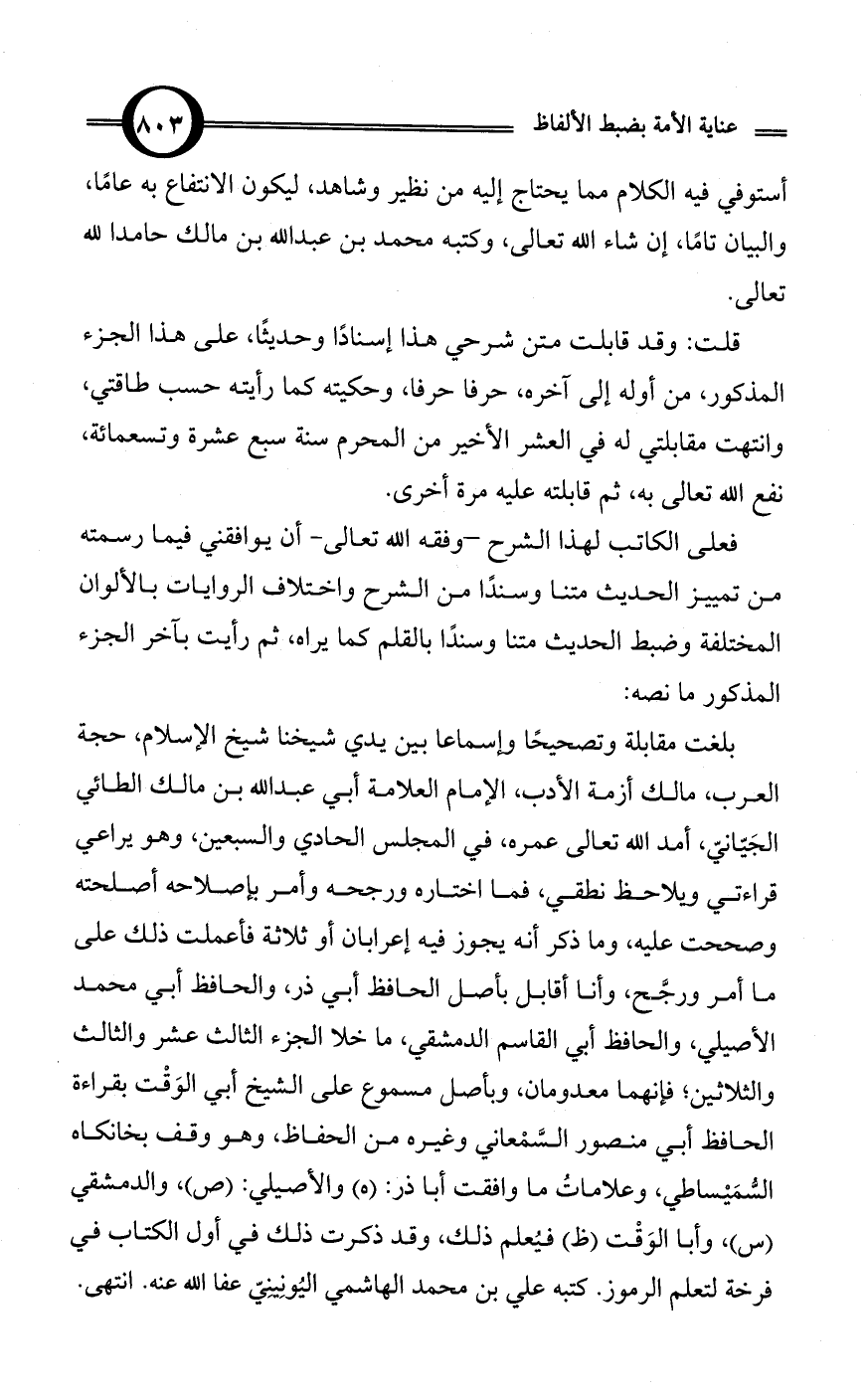 قلت: وقد قابلت متن شرحي هذا إسنادًا وحديثًا، على هذا الجزء المذكور، من أوله إلى آخره، حرفا حرفا، وحكيته كما رأيته حسب طاقتي، وانتهت مقابلتي له في العشر الأخير من المحرم سنة سبع عشرة وتسعمائة، نفع الله تعالى به، ثم قابلته عليه مرة أخرى.