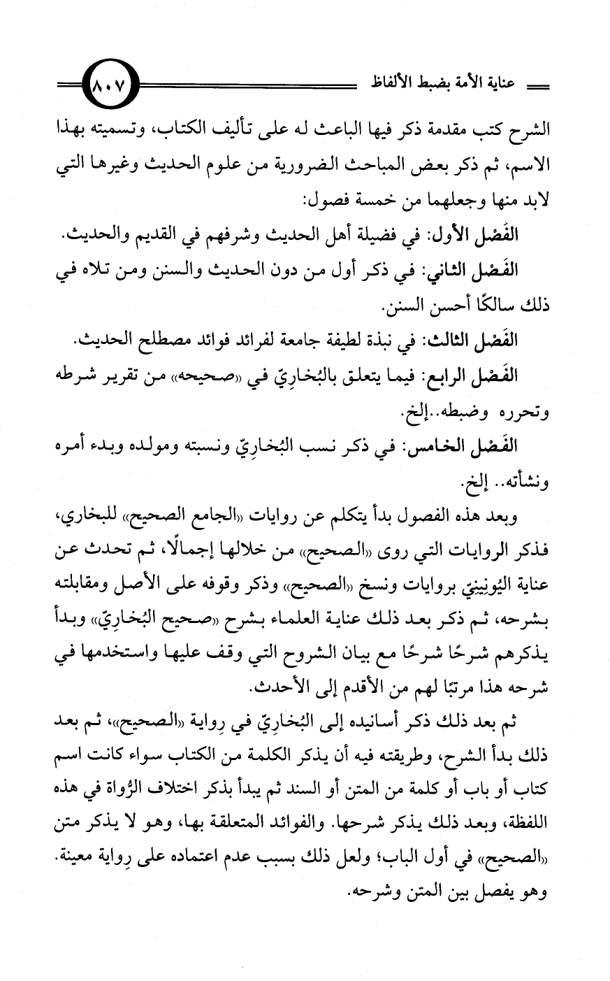 الشرح كتب مقدمة ذكر فيها الباعث له على تأليف الكتاب، وتسميته بهذا الاسم، ثم ذكر بعض المباحث الضرورية من علوم الحديث وغيرها التي لابد منها وجعلهما من خمسة فصول: