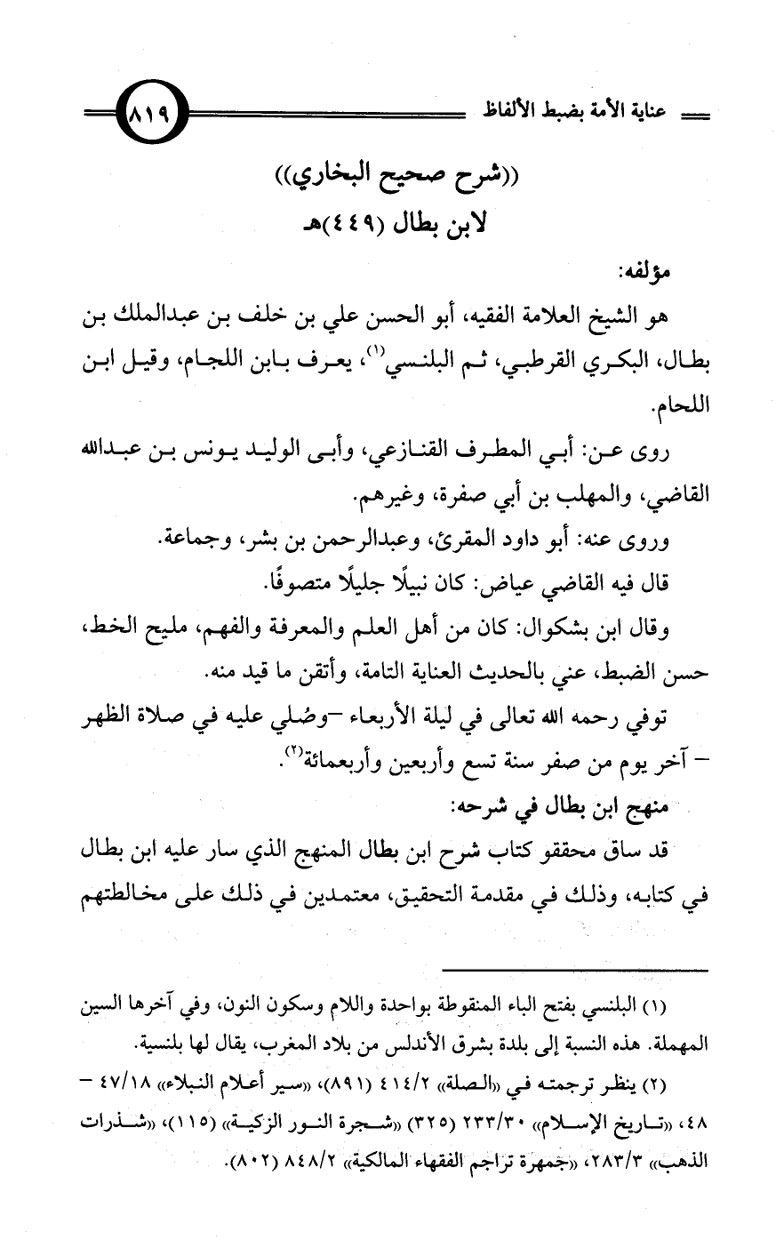 لابن بطال (449) هـ