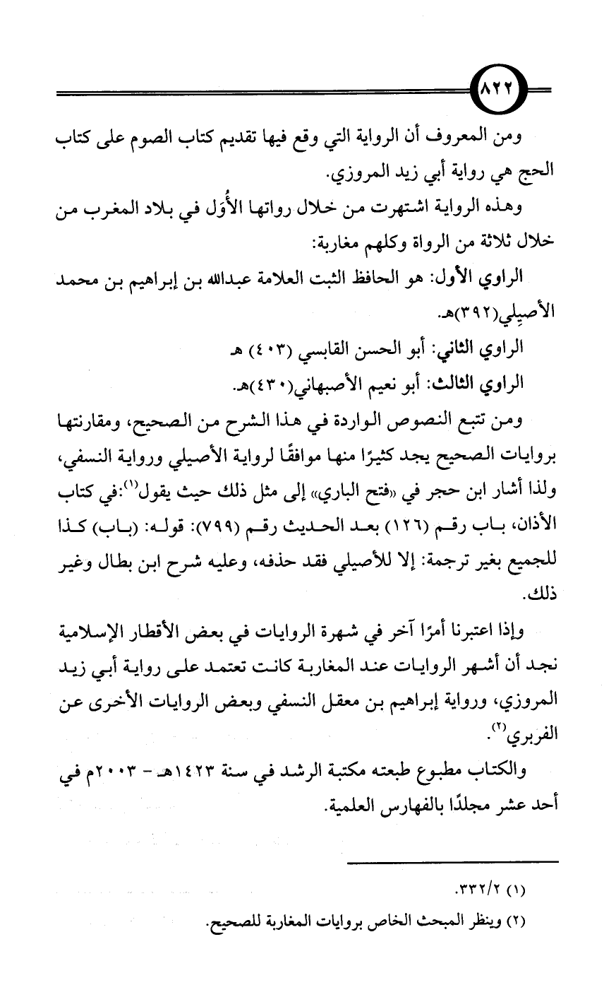 (¬2) وينظر المبحث الخاص بروايات المغاربة للصحيح.