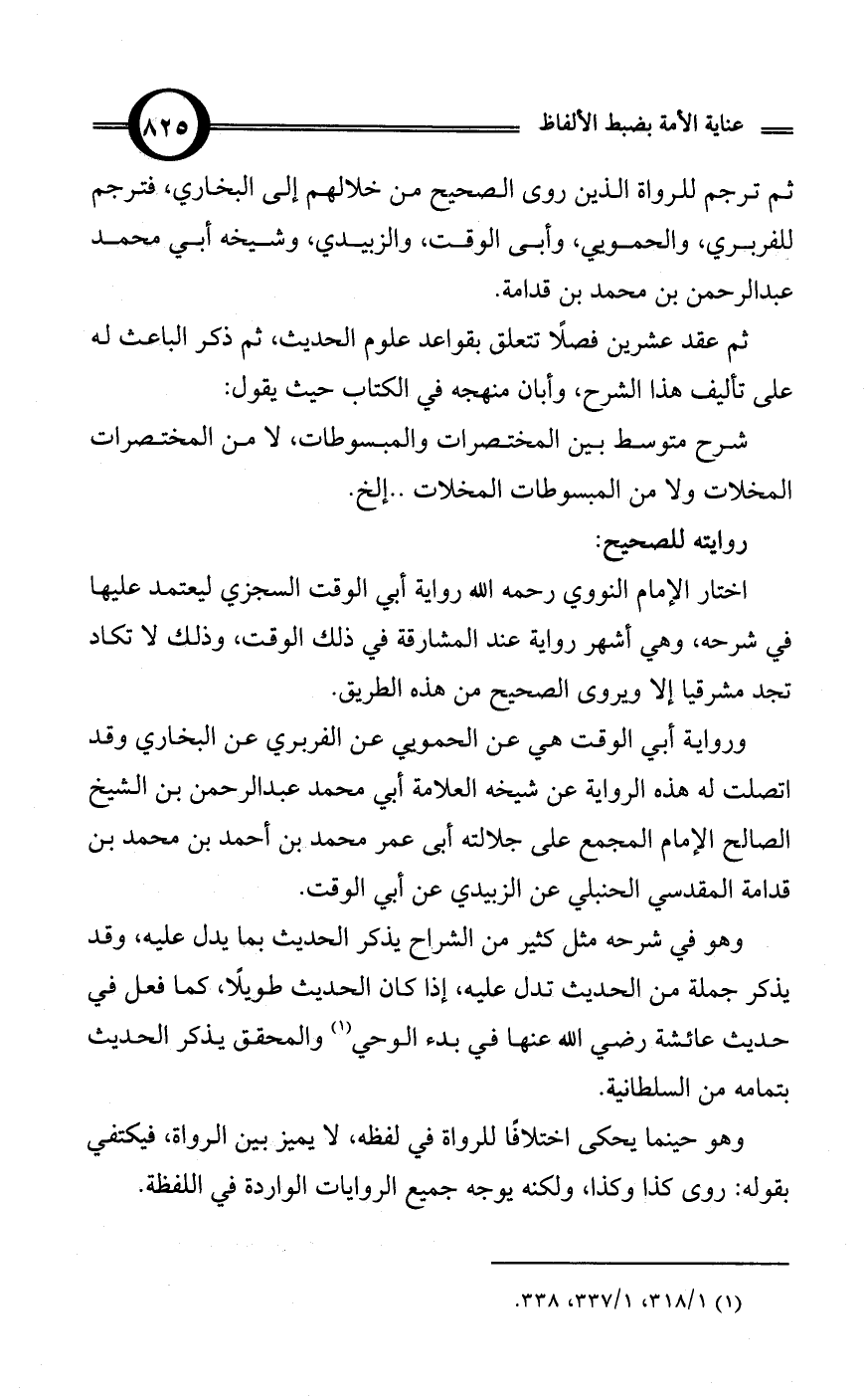 ورواية أبي الوقت هي عن الحمويي عن الفربري عن البخاري وقد اتصلت له هذه الرواية عن شيخه العلامة أبي محمد عبد الرحمن بن الشيخ الصالح الإمام المجمع على جلالته أبى عمر محمد بن أحمد بن محمد بن قدامة المقدسي الحنبلي عن الزبيدي عن أبي الوقت.