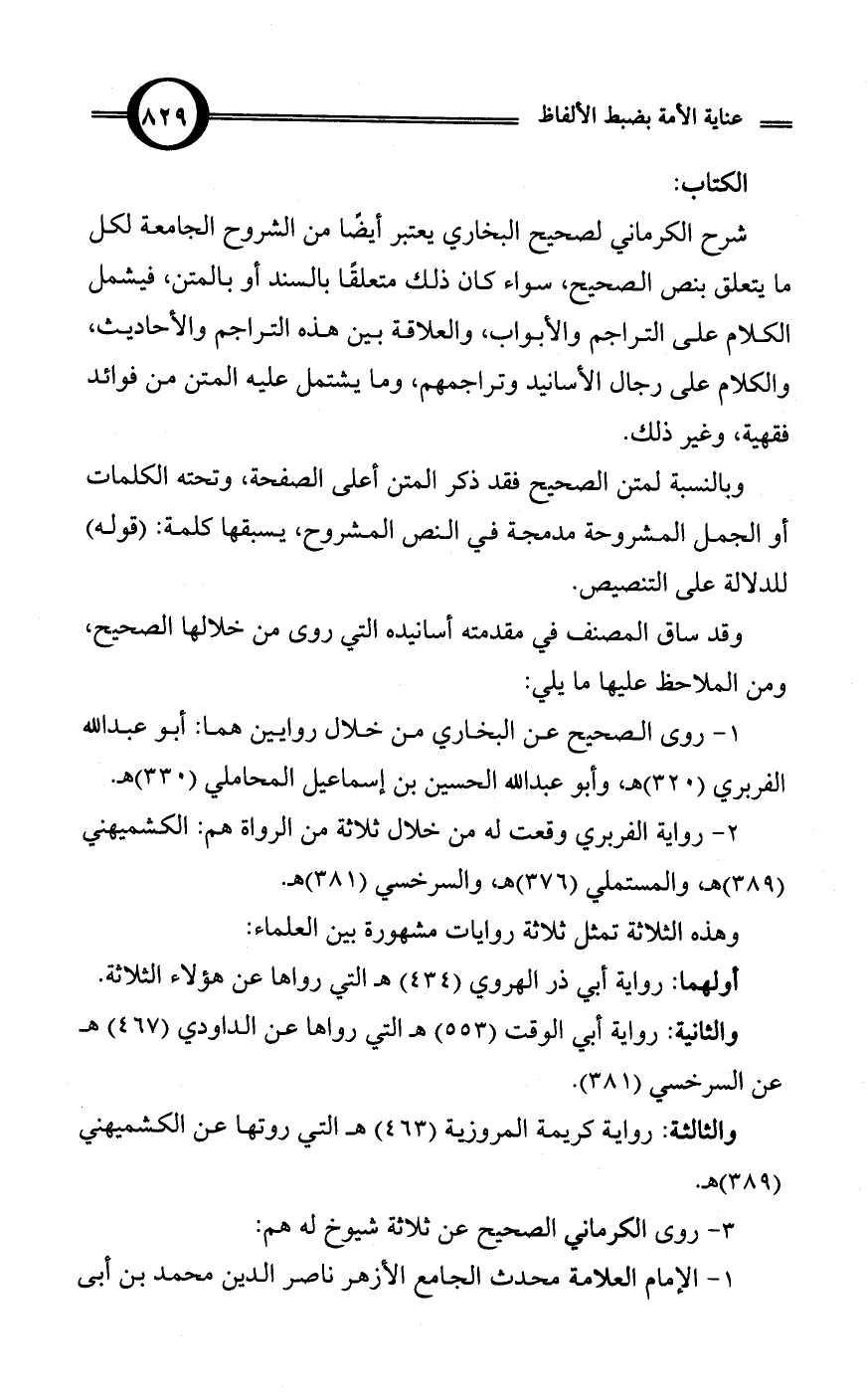 3 - روى الكرماني الصحيح عن ثلاثة شيوخ له هم: